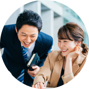 男性も女性も笑顔で